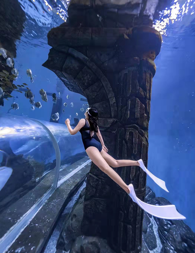 哈爾濱波塞冬全景水下隧道,擁有全國(guó)僅有的以展現(xiàn)充滿傳奇色彩的海神之戰(zhàn)為基礎(chǔ)的巨幕海底世界,全世界獨(dú)一無(wú)二,面向全國(guó)教練團(tuán)隊(duì)開(kāi)放合作,水肺,自由潛,美人魚(yú),水下拍攝,提供專業(yè)水下攝影場(chǎng)地。